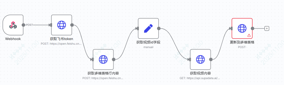 这个n8n流程,我们用来获取视频文案并写入多维表格。