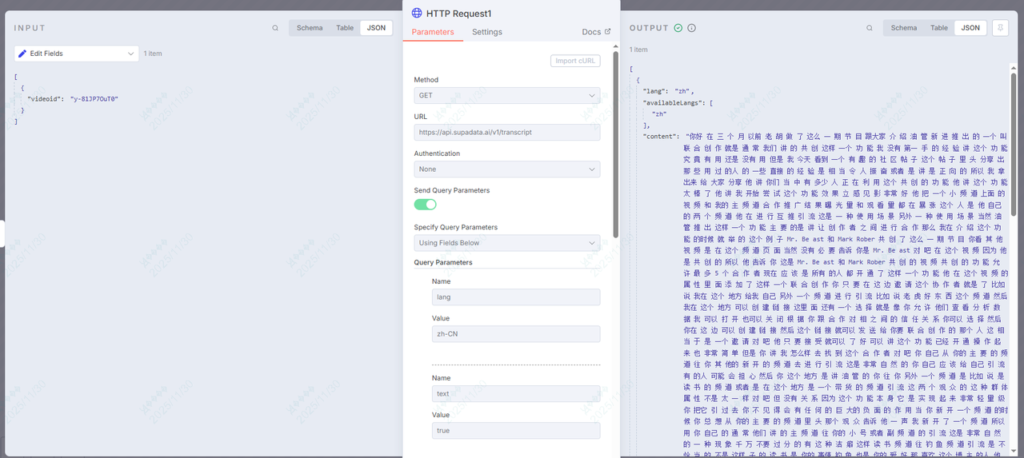 我们通过n8n来搭这个工作流,通过视频id值去获取到对应视频的文案。