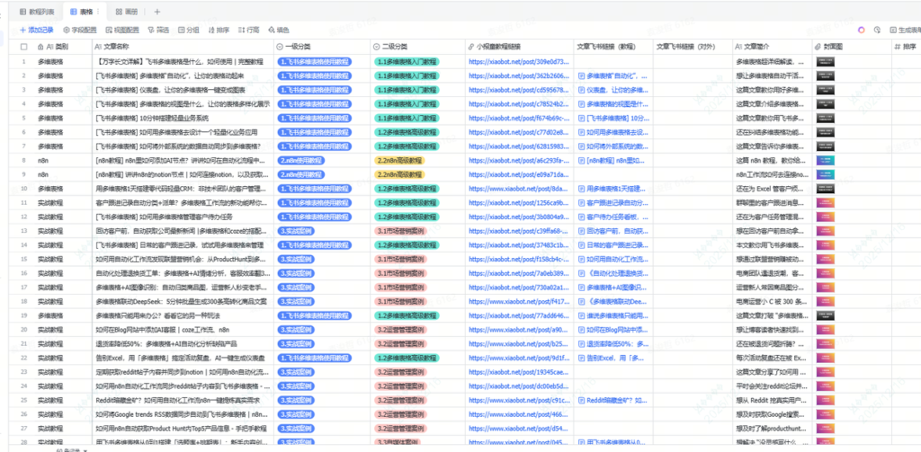 - “多维表格教程”:飞书多维表格的课程目录。