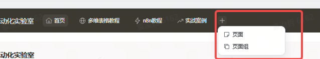 我们可以添加页面,或者也页面组,这个页面你就可以理解为是导航了。