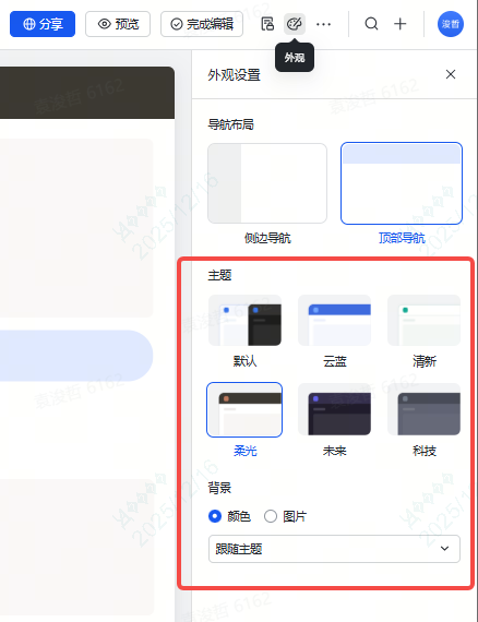 系统预置了六套主题样式。我们都可以点一点一键切换看看效果。最后选择哪一个,主要还是看哪一套符合我们的业务场景。