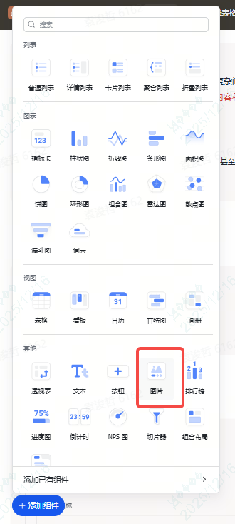 图片组件是多维表格仪表盘没有的组件。