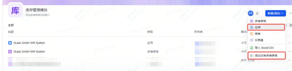 第2步:新建应用,添加多维表格