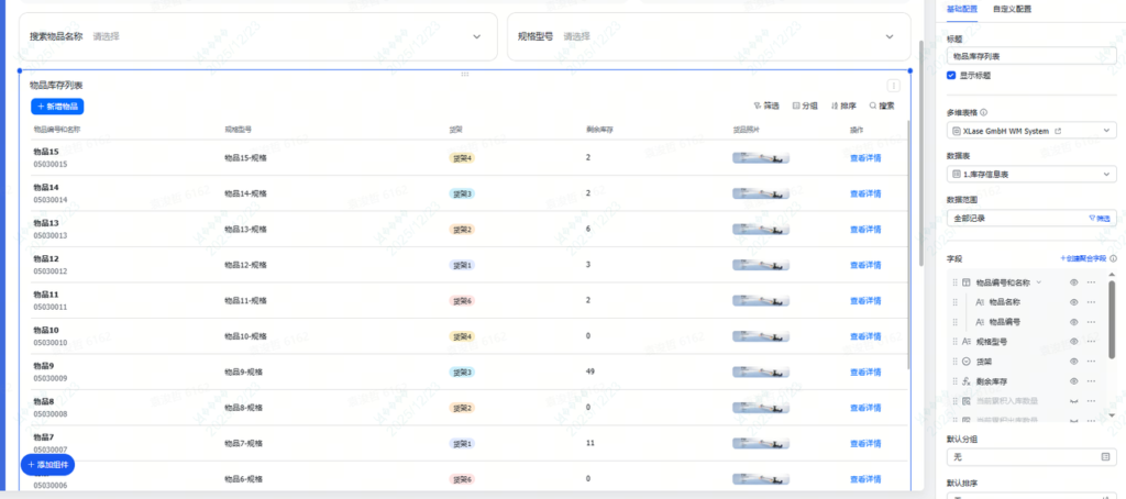 - 新增物品:在列表自定义设置这里,开启“允许添加记录”的按钮即可,这样,当你点击按钮时,就会有一个新增物品的页面,看着很像我们平时使用的系统。