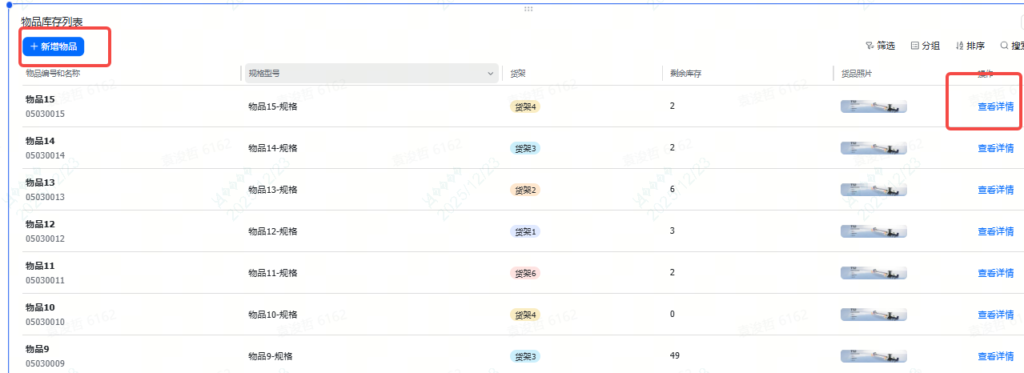 这里就说一下查看详情和新增物品的两个按钮: